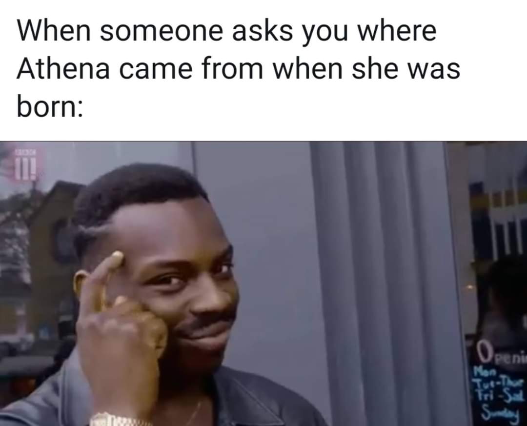 Anyway, Rhea hides Zeus in one of her mother’s caves, then gives Kronos a rock wrapped up in swaddling clothes, which he immediately swallows whole. He must have just been popping babies in his mouth like candy – very different to what the Spanish painter Francisco Goya depicted in his grim mural, “Saturn Devouring His Son”, painted during what was obviously a very bad week sometime in the early 1820s. The cover image for this week’s episode is actually a parody of that painting I saw floating around the web. (Saturn is the Latin or Roman name for Kronos, by the way.)